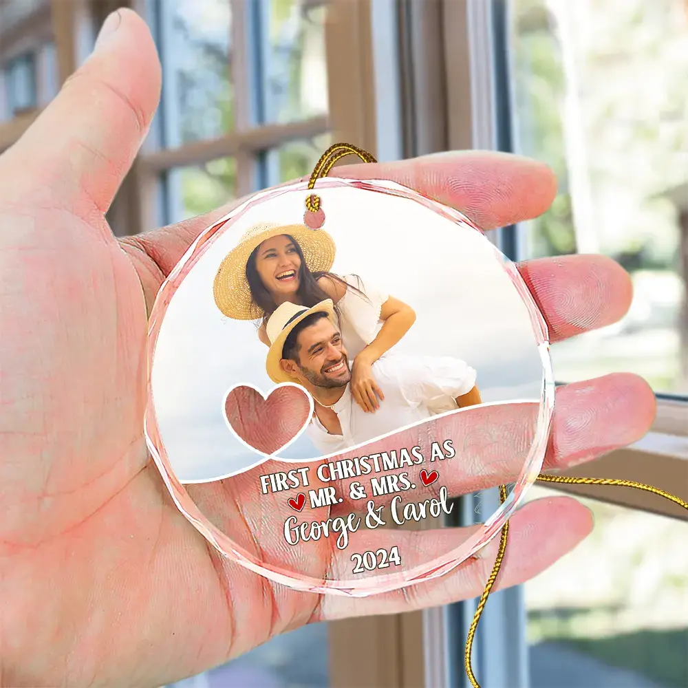 Custom Photo First Christmas As Mr & Mrs Couples - Personalized Circle Glass Ornament Ornament The Next Custom Gift