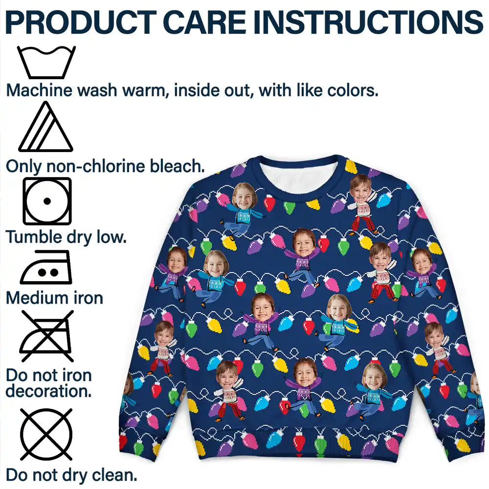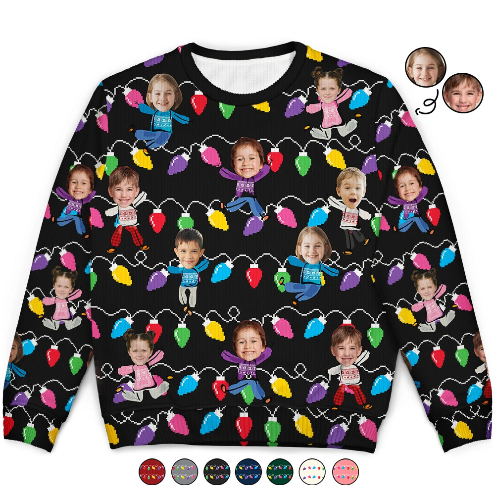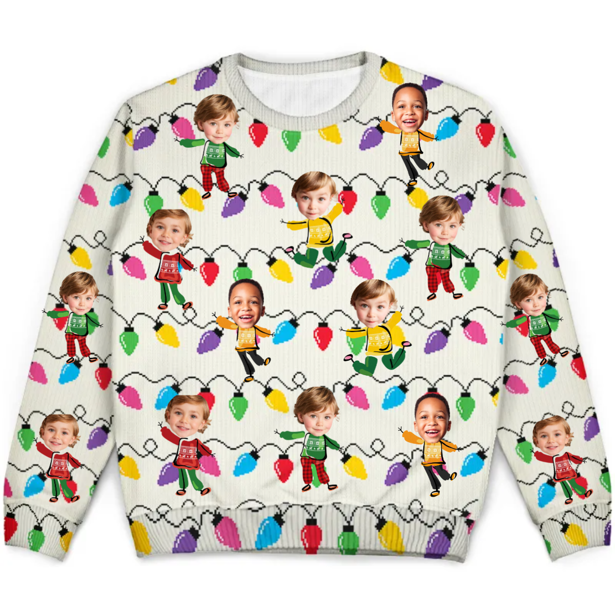 Custom Photo Funny Kids Christmas Light - Personalized Unisex Ugly Sweater