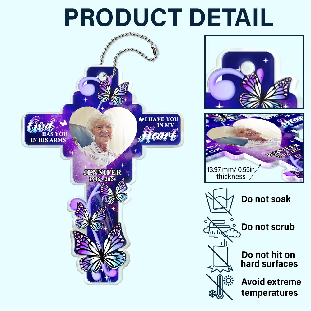 Custom Photo God Has You In His Arms - Personalized Acrylic Car Hanger