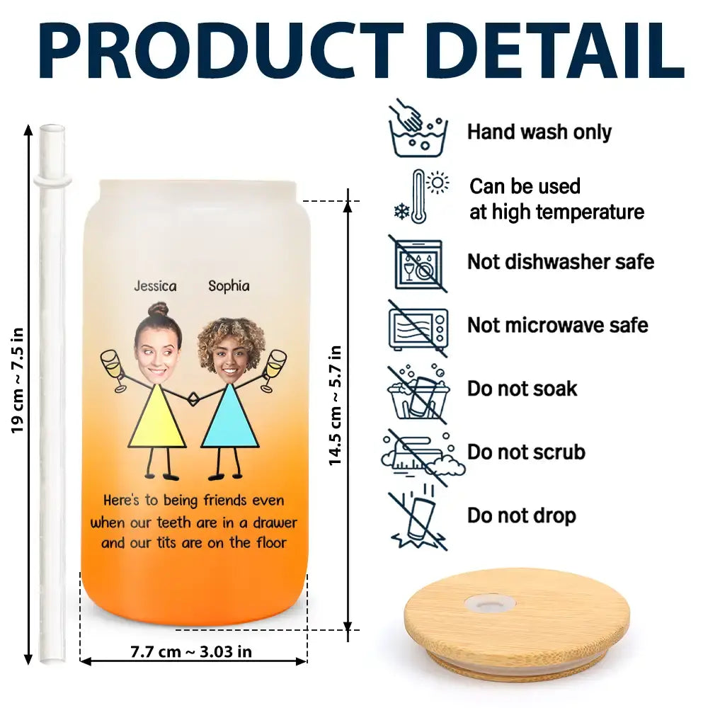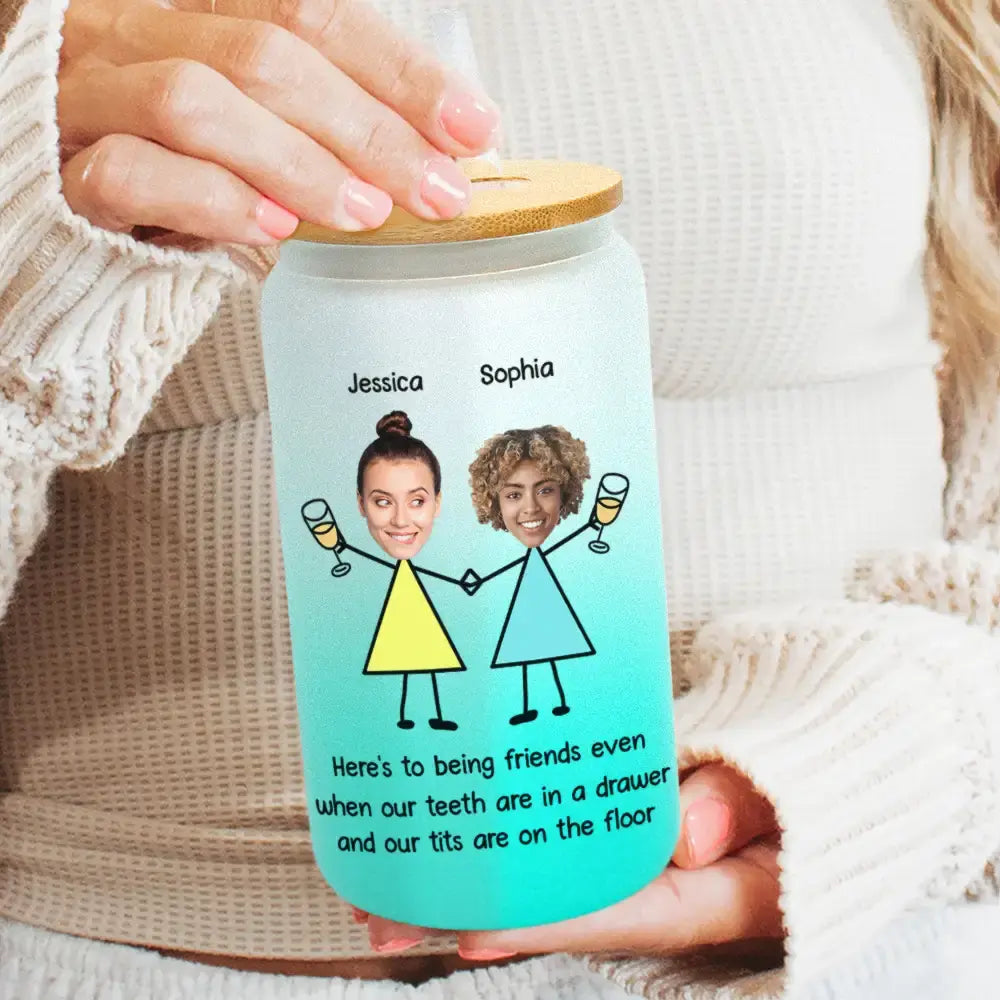 Custom Photo Here's To Being Friends Old Besties - Personalized Ombre Frosted Glass Can Glass Can The Next Custom Gift
