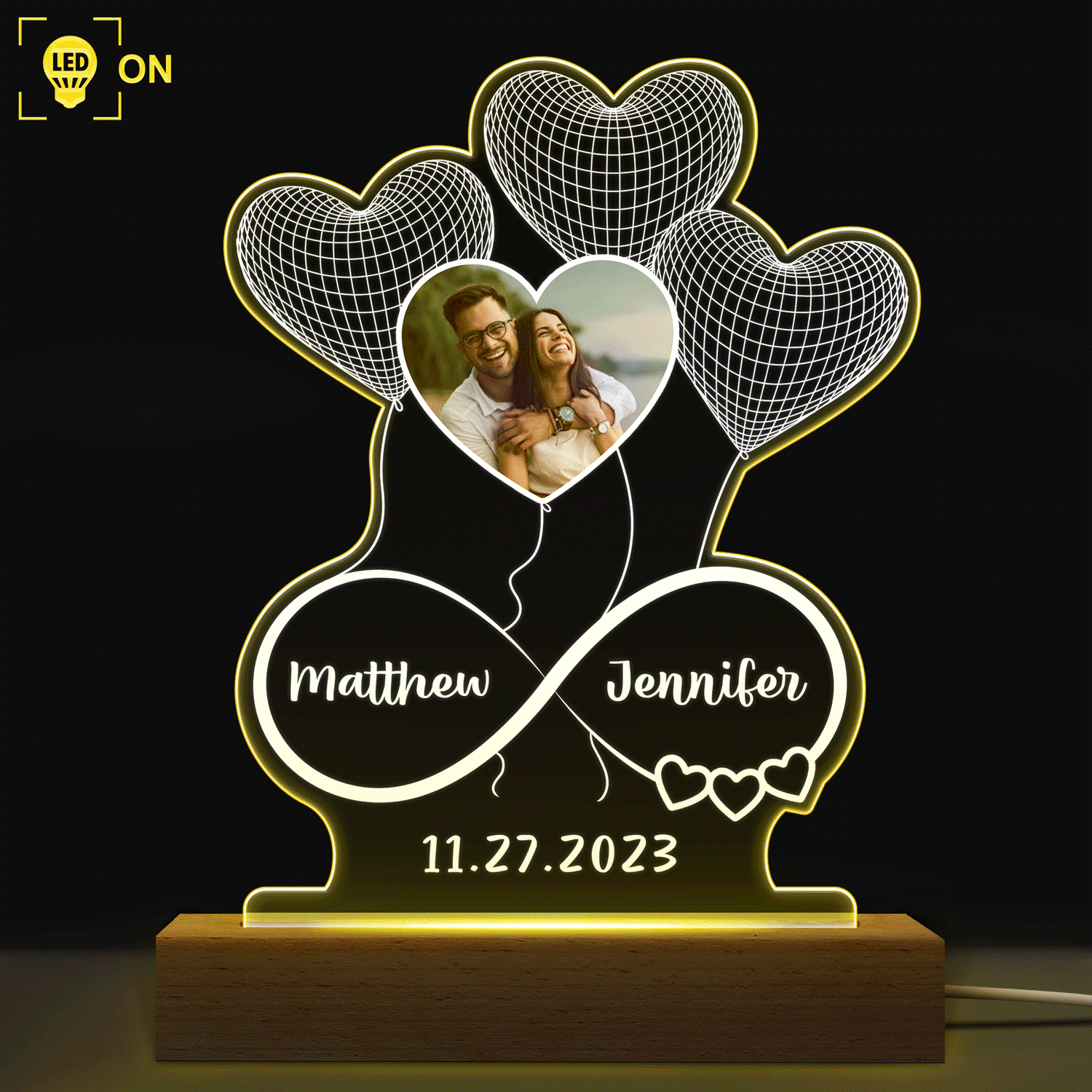 Custom Photo Infinity Hearts - Loving, Anniversary Gift For Couples, Spouse, Lover, Wife, Husband, Girlfriend, Boyfriend - Personalized 3D Led Light Wooden Base