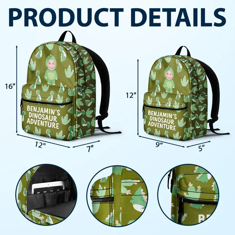 Custom Photo Kid's Dinosaur Unicorn Bear Adventure - Personalized Canvas Backpack