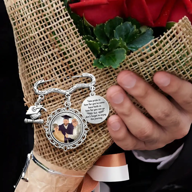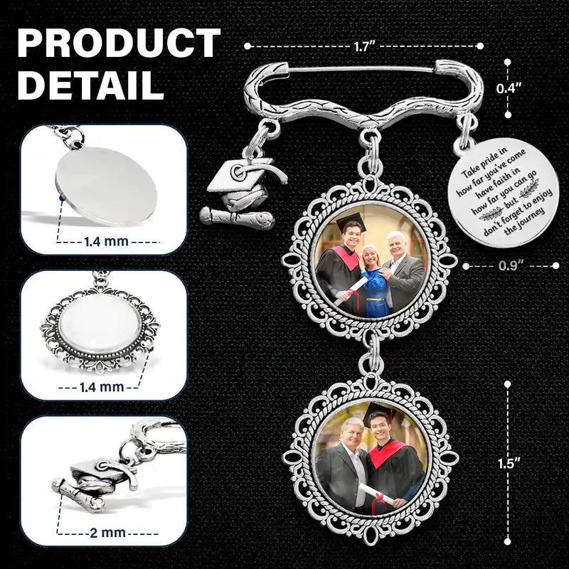 Celebrate success with Custom Photo Take Pride In How Far You've Come - Personalized Graduation Tassel Pin, a keepsake designed as a meaningful gift for daughter, son, grandkids, or yourself on Graduation Day, Birthday, Christmas, Thanksgiving, Mother’s Day, or Father’s Day. Capture a sentimental and heartfelt moment that feels cherished and unforgettable as your graduate steps into a new chapter.