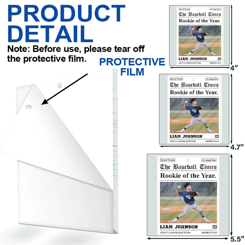 Celebrate special baseball memories with the Custom Photo The Baseball Times - Personalized Custom Shaped Acrylic Ornament! This unique gift for kids, grandkids, or young athletes is perfect for Christmas, Birthdays, Thanksgiving, or any sporty occasion. Bring joy and nostalgia with a custom photo keepsake that captures memorable moments on the field. A meaningful and joyful ornament, it’s an awesome addition to your holiday décor or sports-themed collection.