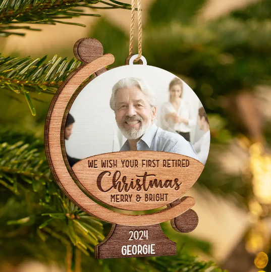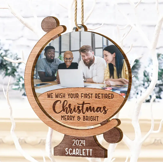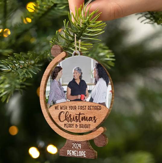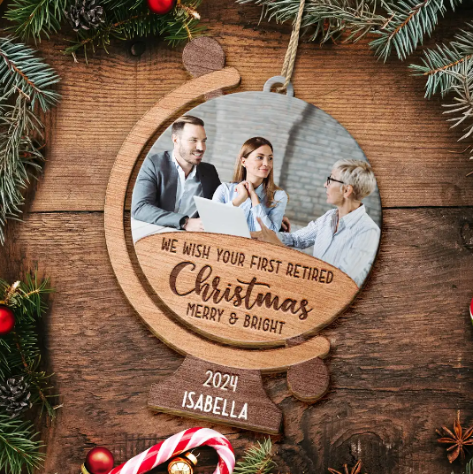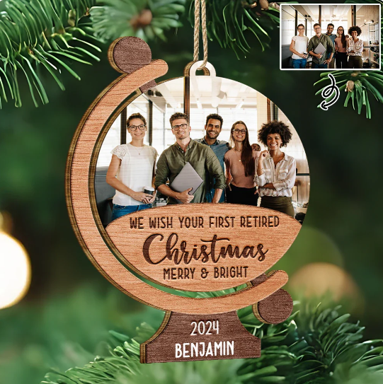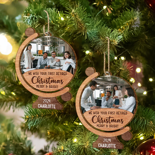 Custom Photo We Wish Your First Retired Christmas Merry & Bright - Personalized Custom Shaped Wooden Ornament