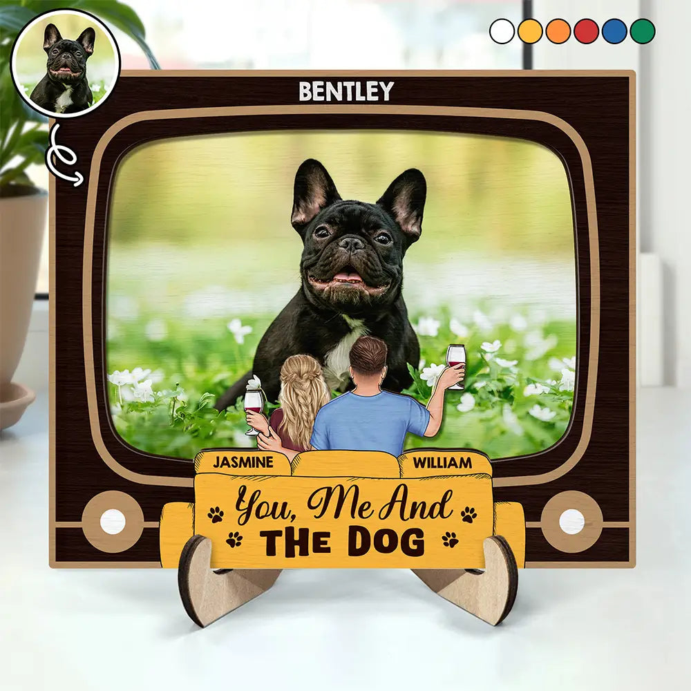 Celebrate your love for each other and your furry friend with the "Custom Photo You, Me And The Dog Cat - Personalized 2-Layered Wooden Plaque With Stand". This unique and sentimental gift is perfect for couples, dog moms, dog dads, cat lovers, or anyone who holds their pet close to their heart. Featuring a custom photo of you, your partner, and your beloved pet, this plaque serves as a thoughtful and meaningful reminder of the special bond you share.