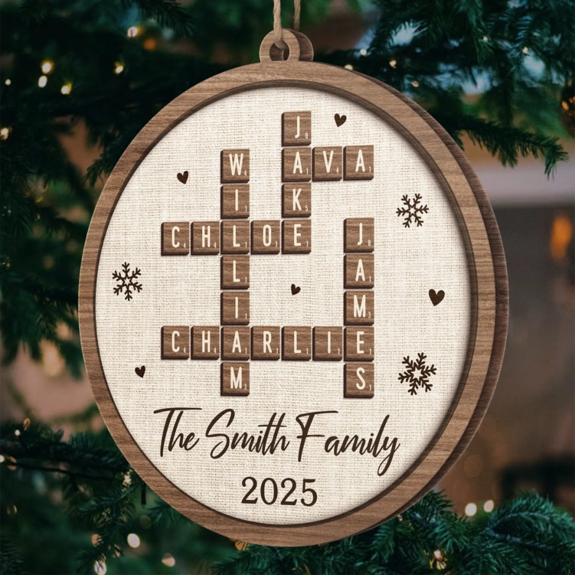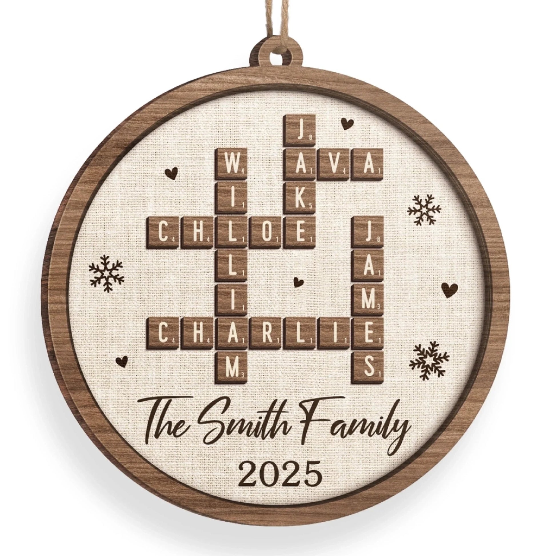 Custom Scrabble Wood Ornament - Personalized Christmas Birthday Gifts For Mom, Dad, Brother, Sister, Kids - Christmas Starts With Family Smiles