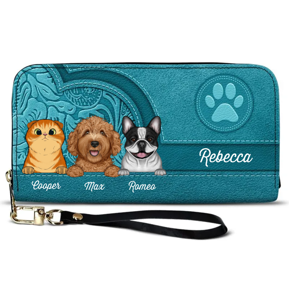 Cute Dogs And Cats Aesthetic Pattern - Birthday, Loving Gift For Pet Lovers, Dog Mom, Cat Mom - Personalized Leather Long Wallet