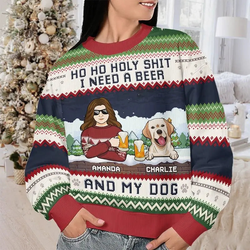 Dog Lovers - I Need A Beer And My Dogs - Personalized Ugly Sweater