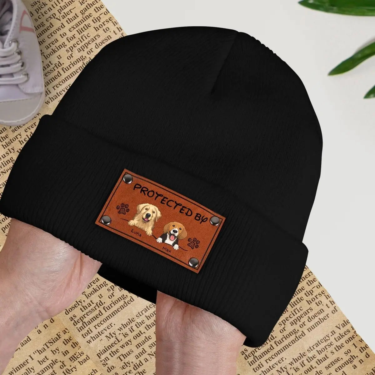 Dog Lovers - Protected By (D) - Personalized Baby Beanie
