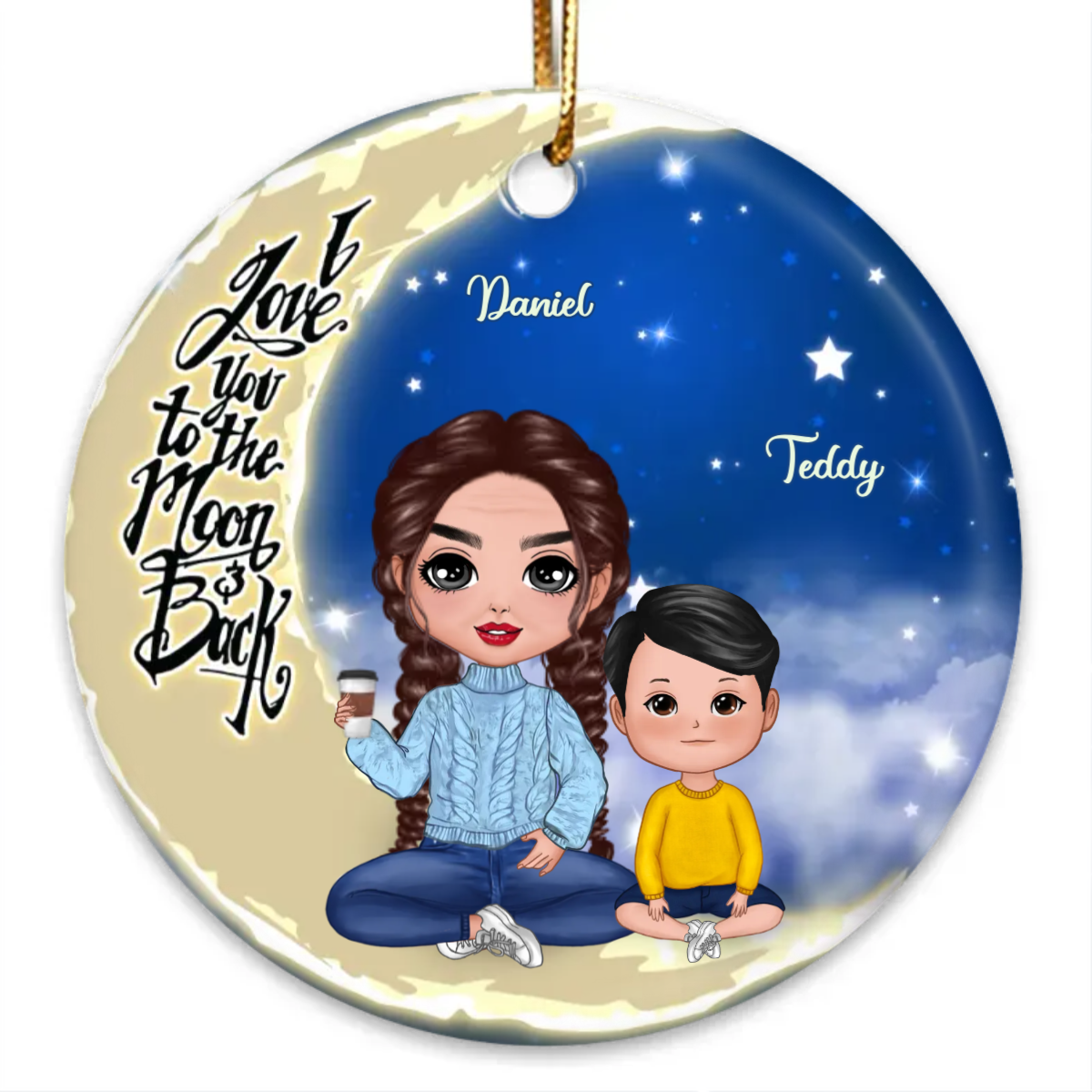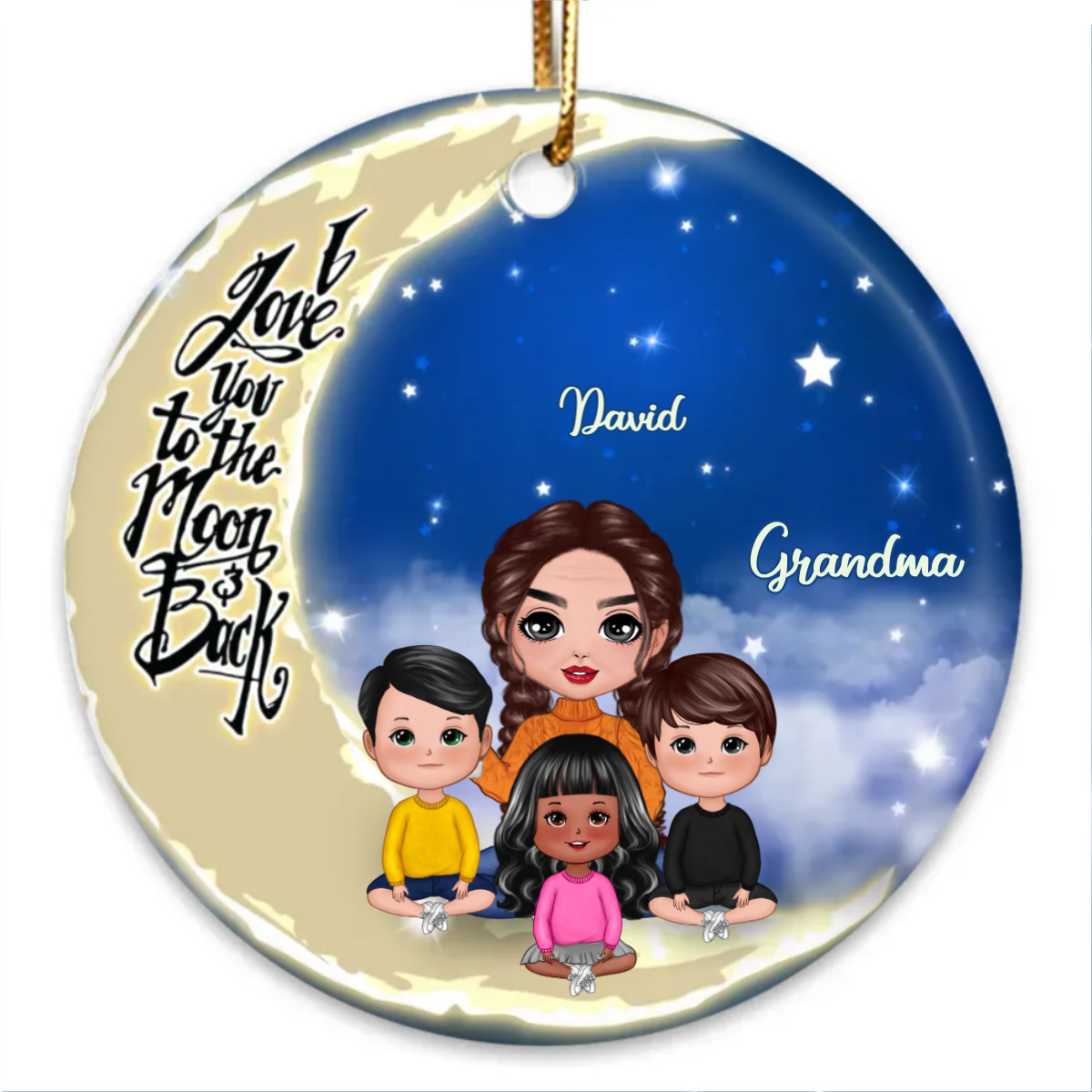 Doll Grandma Grandkids On Moon Personalized Circle Ornament