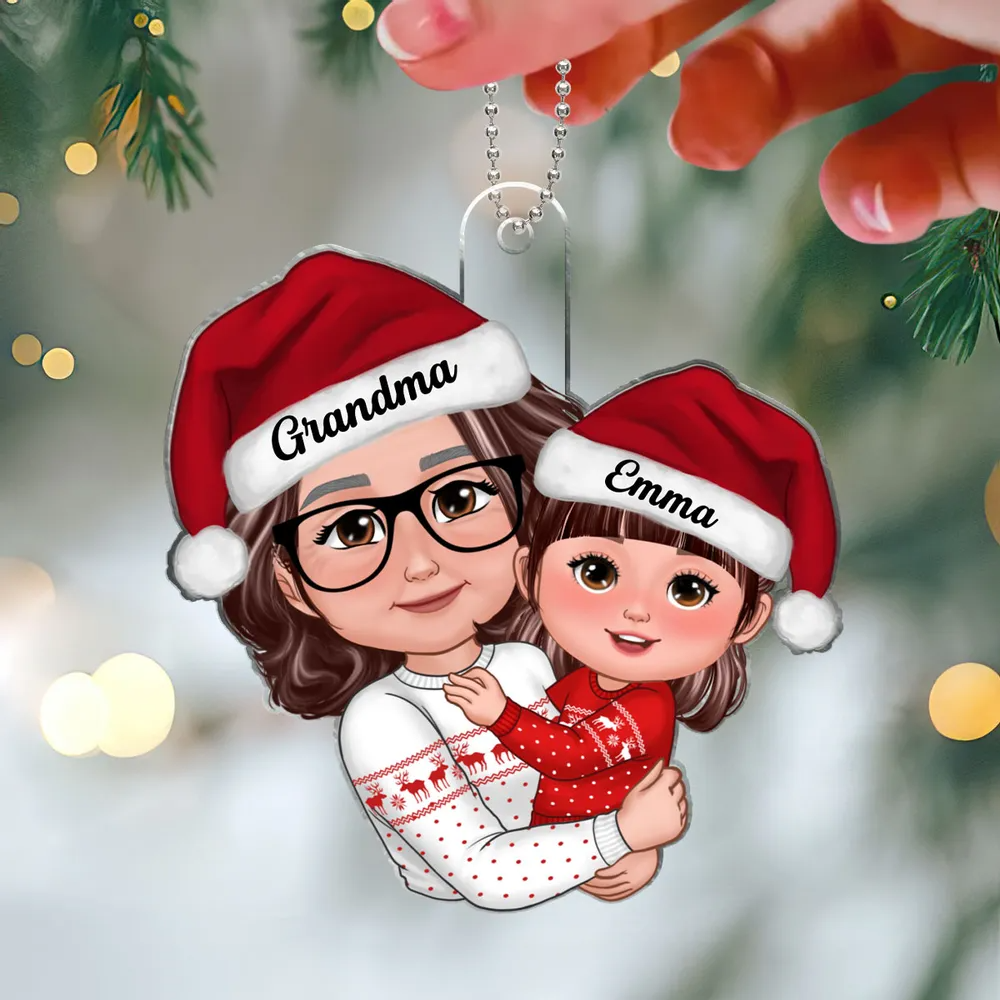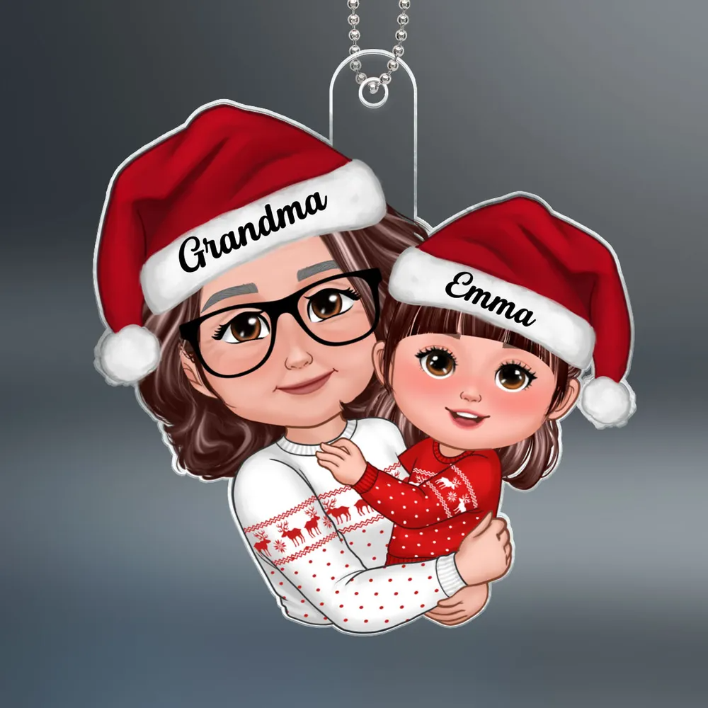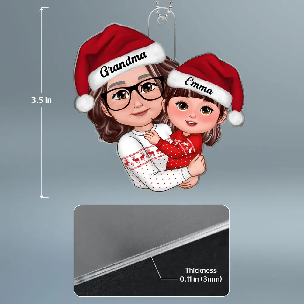 Doll Grandma Hugging GrandKid Christmas Gift For Granddaughter Grandson Personalized Acrylic Ornament