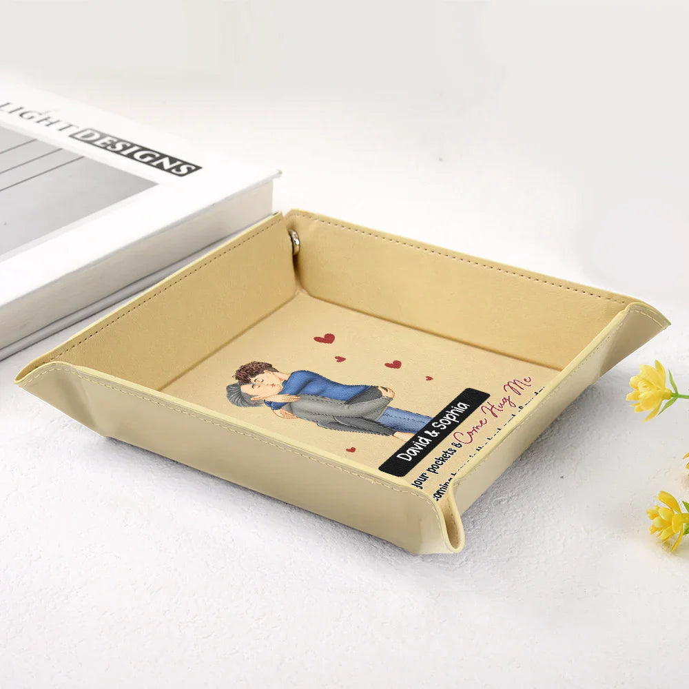 Celebrate love and togetherness with this Empty Your Pockets And Come Hug Me - Personalized Leather Valet Tray, perfect for couples who appreciate meaningful gifts. This unique and thoughtful tray is designed to hold your daily essentials while reminding you of your special bond. Ideal for placing on a nightstand or entryway table, it keeps your space organized and adds a touch of romance to your home decor.