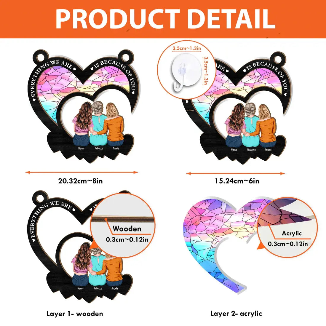 • The front of this suncatcher is made from acrylic plexiglass.