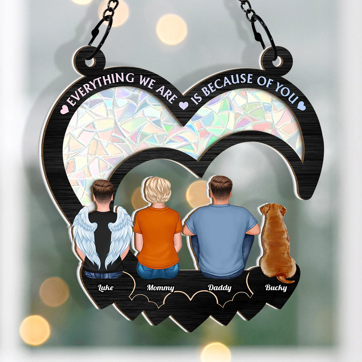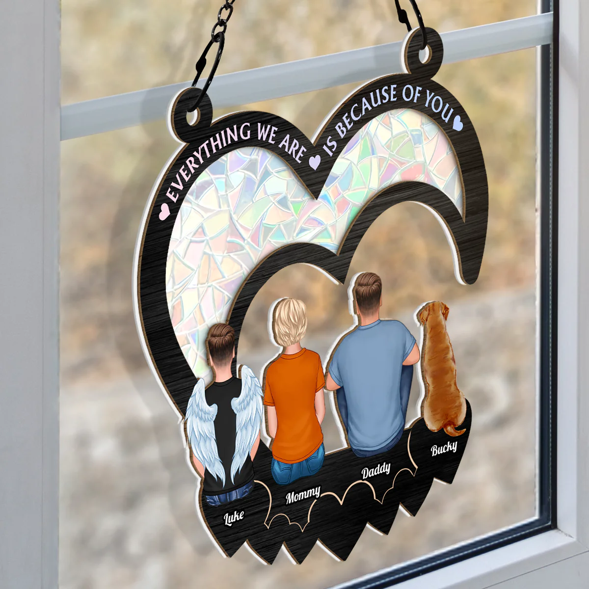 Everything We Are Is Because Of You - Personalized Window Suncatcher - Gift For Family Mom Dad
