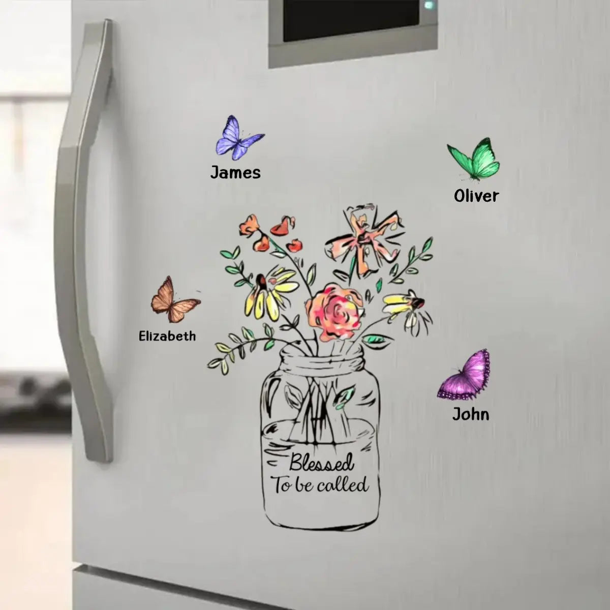 Family - Blessed To Be Called Grandma Mom Vase of Flower -  Personalized Sticker  The Next Custom Gift