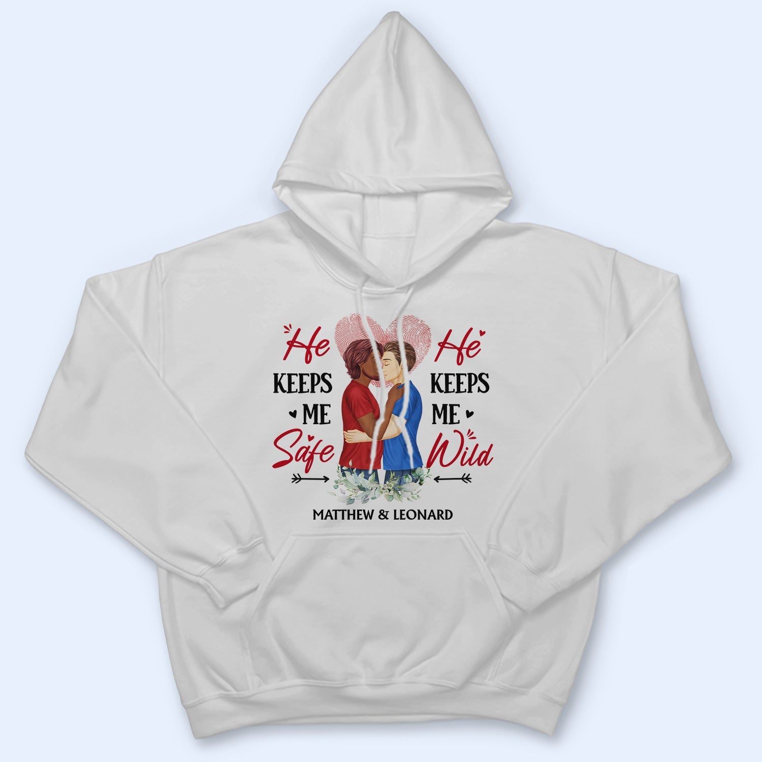 Family Couple He Keeps Me Safe She Keeps Me Wild - Gift For Couples - Personalized Custom T Shirt