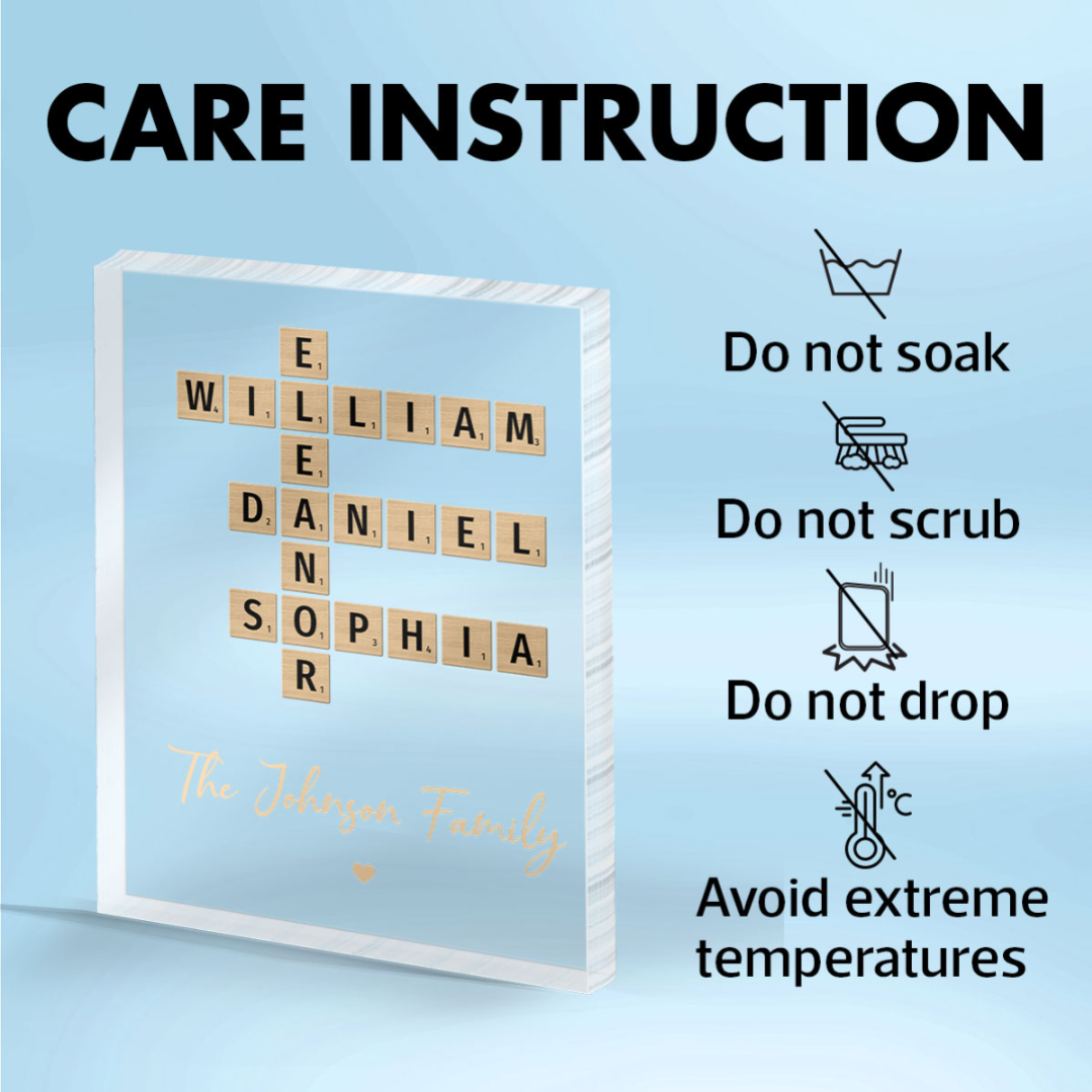 Turn your family’s unique connections into a stunning piece of art with the Family Crossword Art Acrylic Block Plaque. Featuring an exclusive crossword design, this elegant and modern plaque beautifully captures the names of your loved ones, making it a meaningful keepsake for your home or a thoughtful gift for someone special.