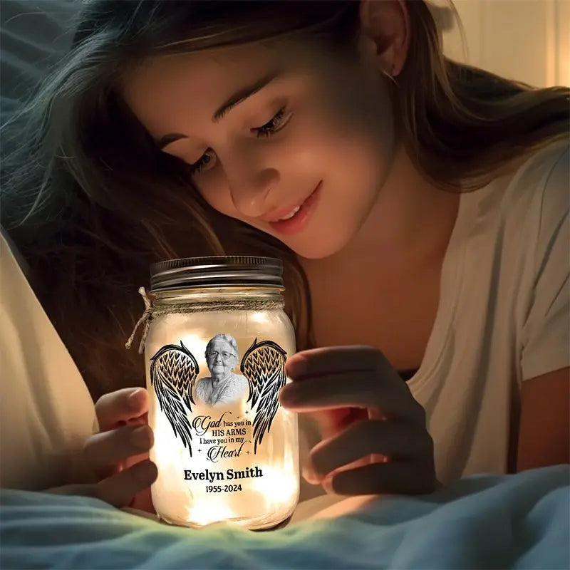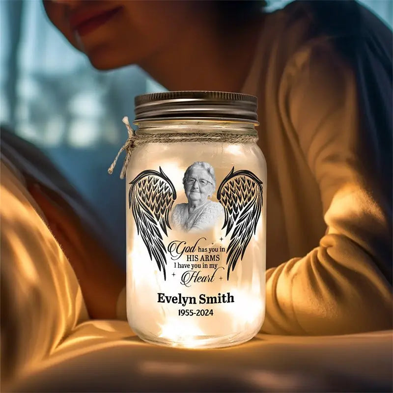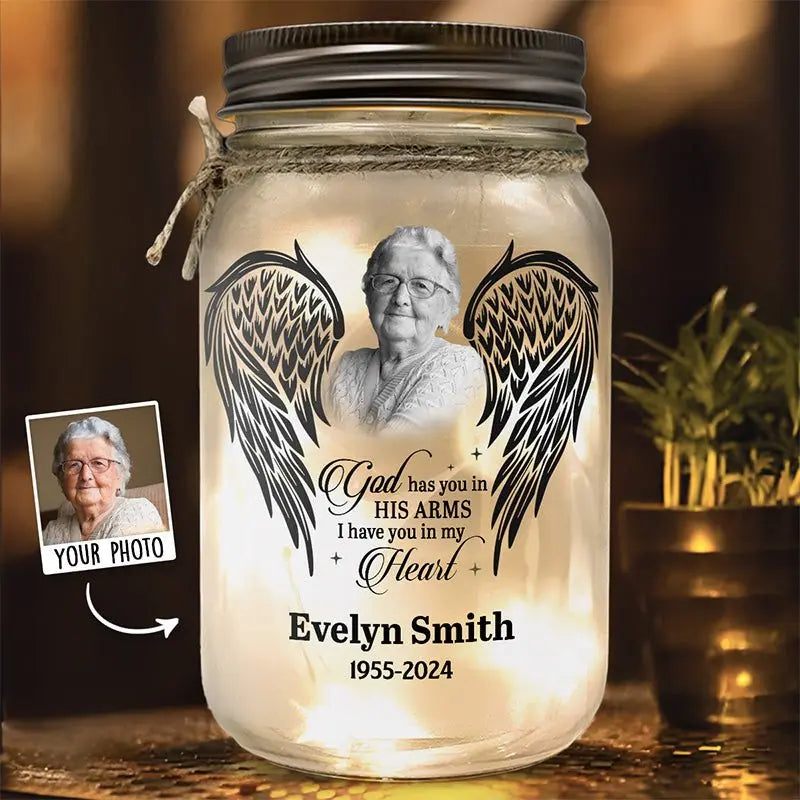 Family - God Has You In His Arm, I Have You In My Heart - Personalized Jar Light  The Next Custom Gift