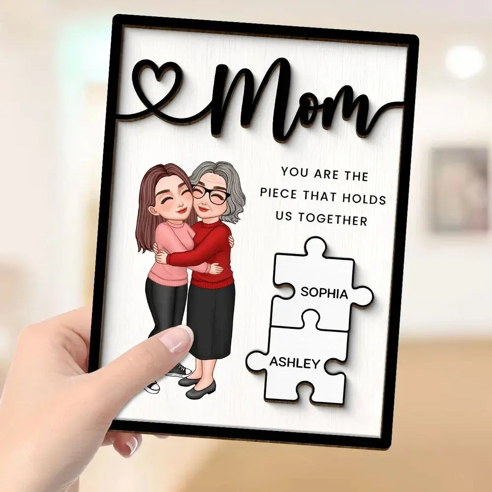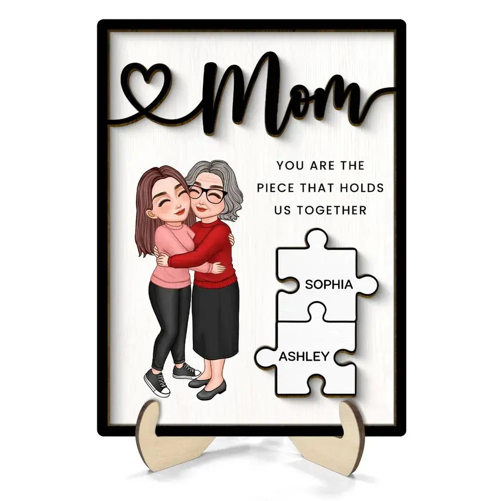 Family - Grandma Mom Kid Piece Holds Us Together - Personalized 2-Layer Wooden Plaque Wooden Plaque The Next Custom Gift