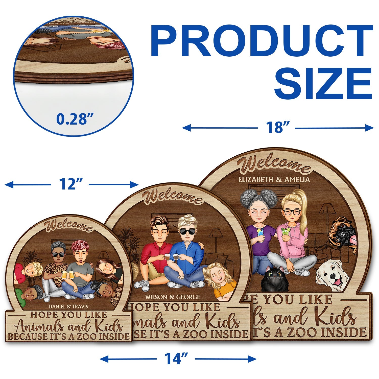 Family Hope You Like Animals And Kids - Anniversary, Birthday, Home Decor Gift For Husband, Wife, Couple Pet Loves - Personalized Custom Shaped Wood Sign