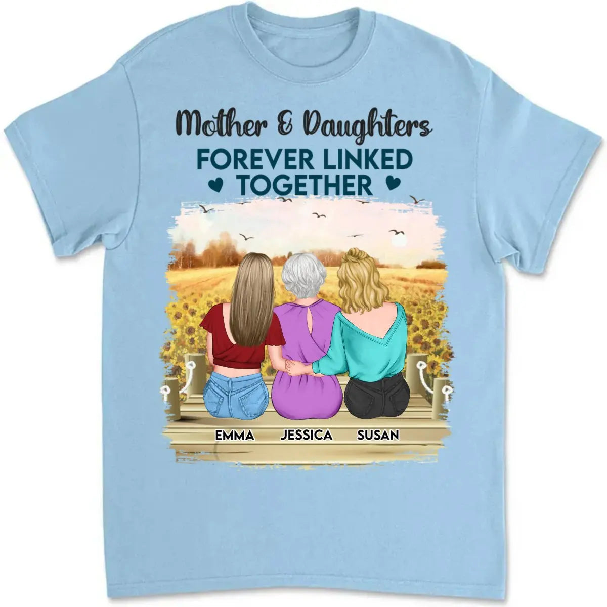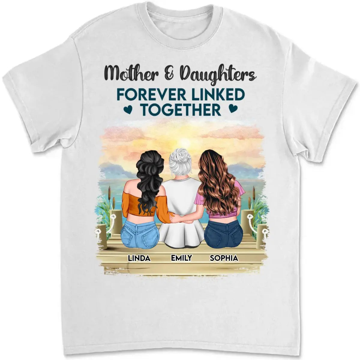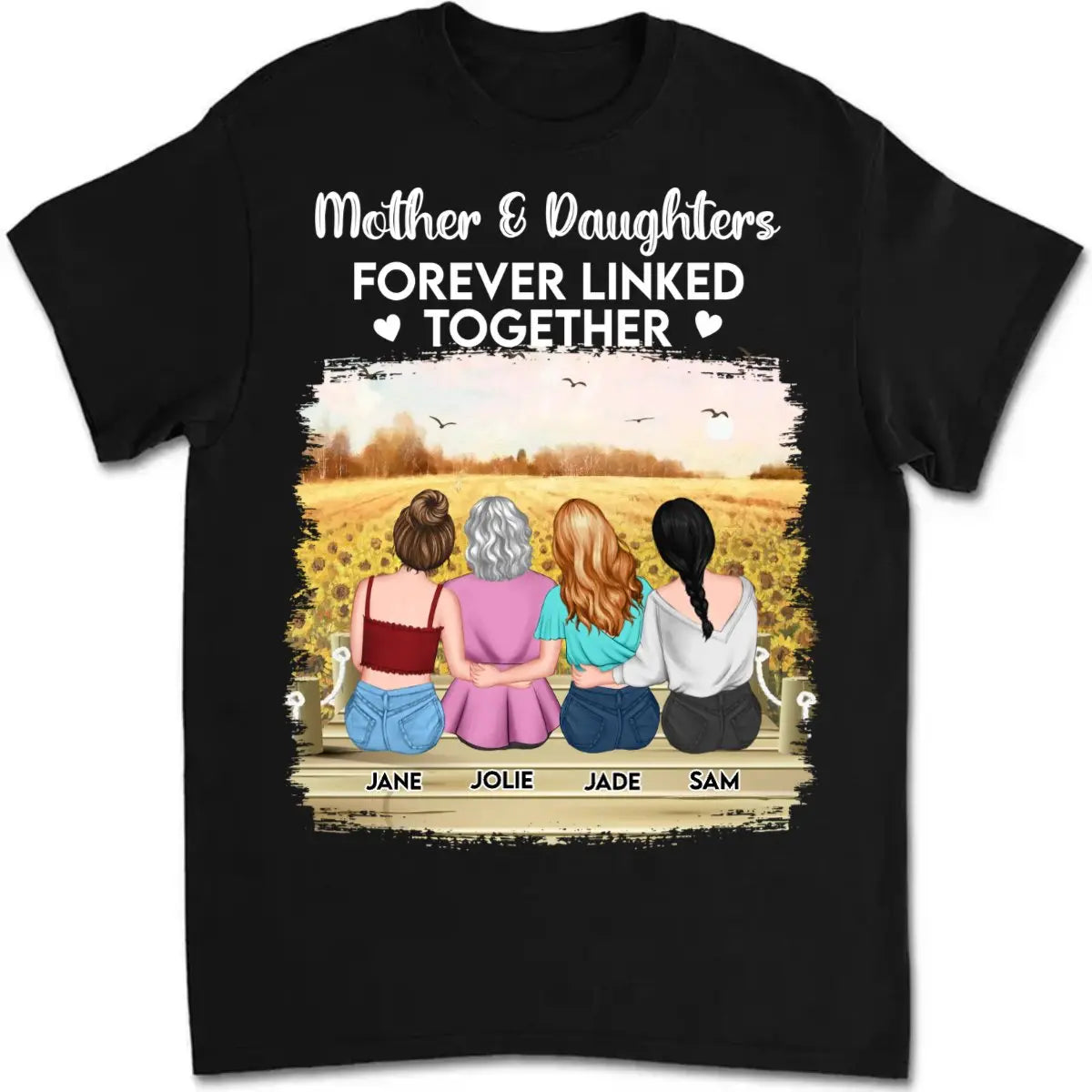 Family - Mother & Daughters Forever Linked Together - Personalized Unisex T-Shirt