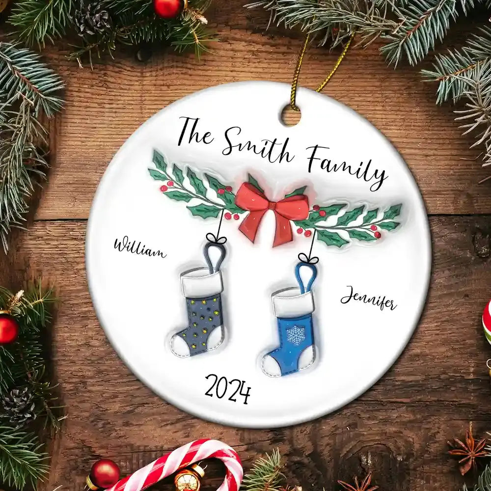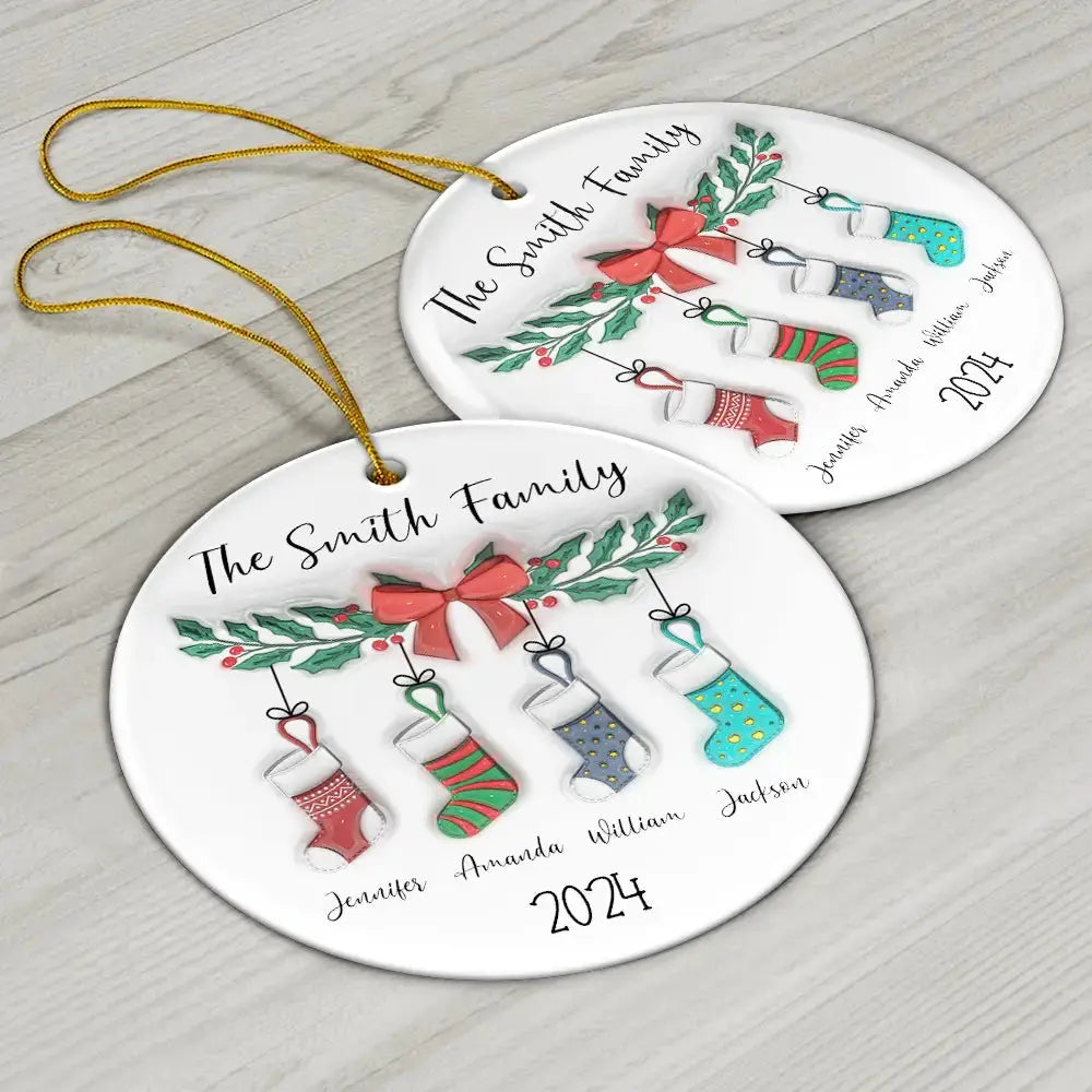 Family Stocking - 3D Inflated Effect Printed Ornament, Personalized Circle Ceramic Ornament ornament The Next Custom Gift