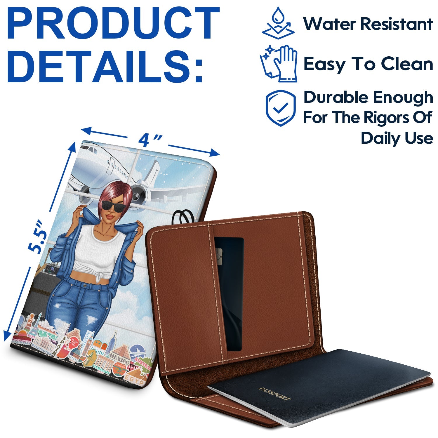 - High Quality: This passport is made from scratch-resistant PU leather with beautiful quality printing that makes travel more fun. This synthetic material is water resistant, lightweight, easy to clean, and durable enough for the rigors of daily use.