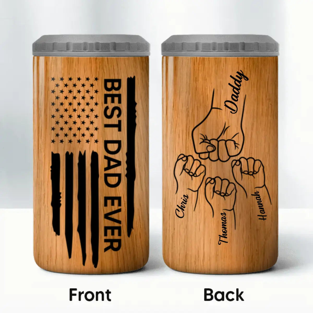 ???? Coolest Gift For Father Figures:?ÿCapture the essence of fatherhood, featuring a heartfelt tribute to dads everywhere. One side proudly displays a flag, symbolizing strength and resilience, paired with the affirming quote ƒ??Best Dad Everƒ?� or any other nickname. On the opposite side, a touching silhouette of a father and children sharing a fist bump creates an intimate moment frozen in time. Personalized with the names of your loved ones, it transforms the tumbler into a cherished keepsake.