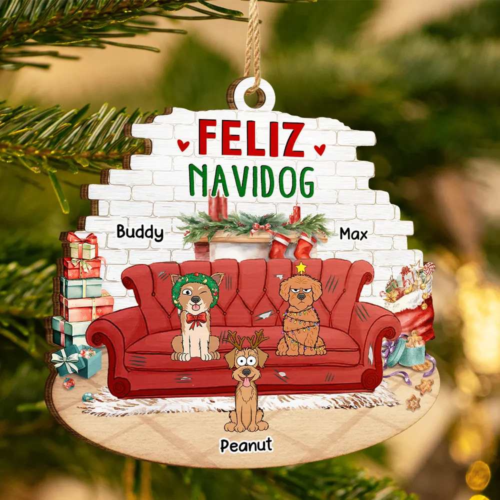 Feliz Navidog Dog Christmas - Personalized Custom Shaped Wooden Ornament