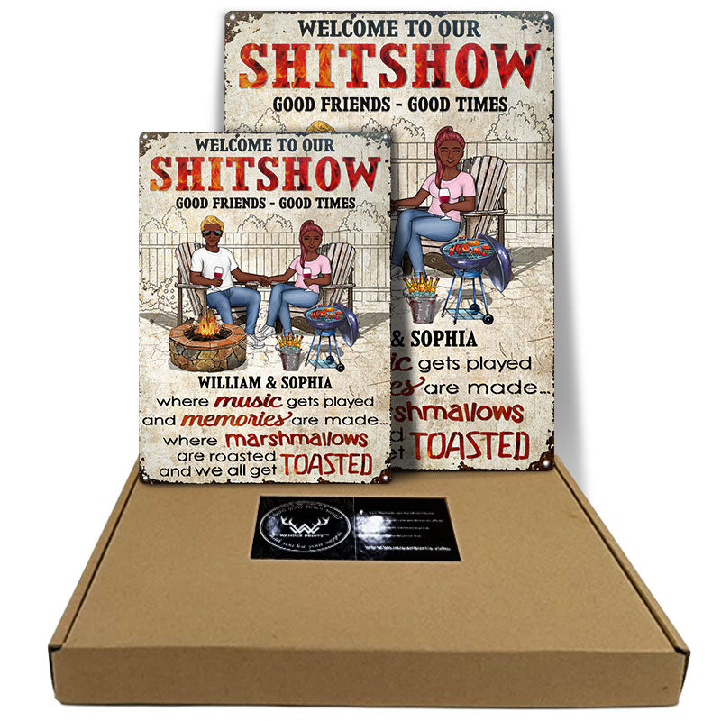Fire Pit Grilling Family Couple Where Music Gets Played And Memories Are Made - Backyard Sign - Personalized Custom Classic Metal Signs