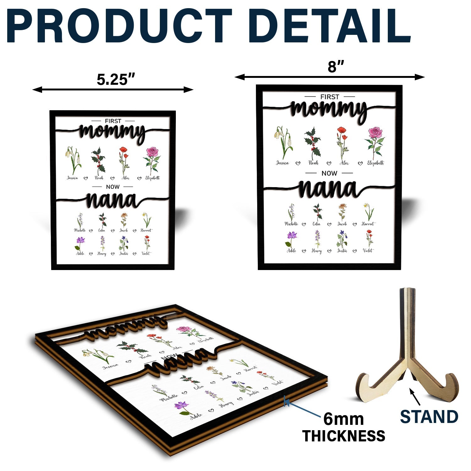 First Mom Now Grandma - Gift For Mom, Grandma - Personalized 2-Layered Wooden Plaque With Stand