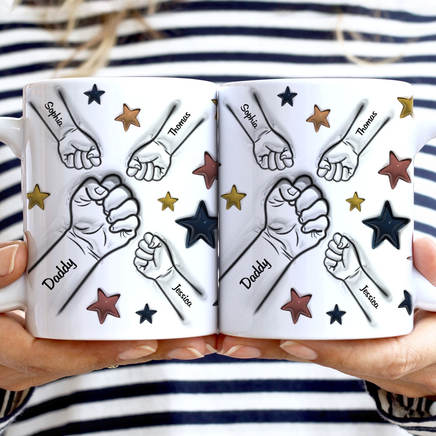 Fist Bump, A Bond That Can Never Be Broken - Gift For Dad, Grandpa, Mom, Grandma - 3D Inflated Effect Printed Mug, Personalized White Edge-to-Edge Mug