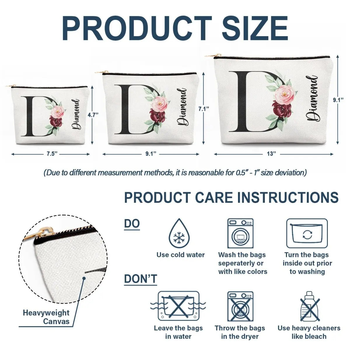 Floral Monogram - Gift For Her, Women - Personalized Cosmetic Bag