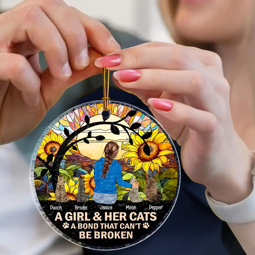 Flower Field A Girl And Her Dog And Cat - Personalized Circle Acrylic Ornament