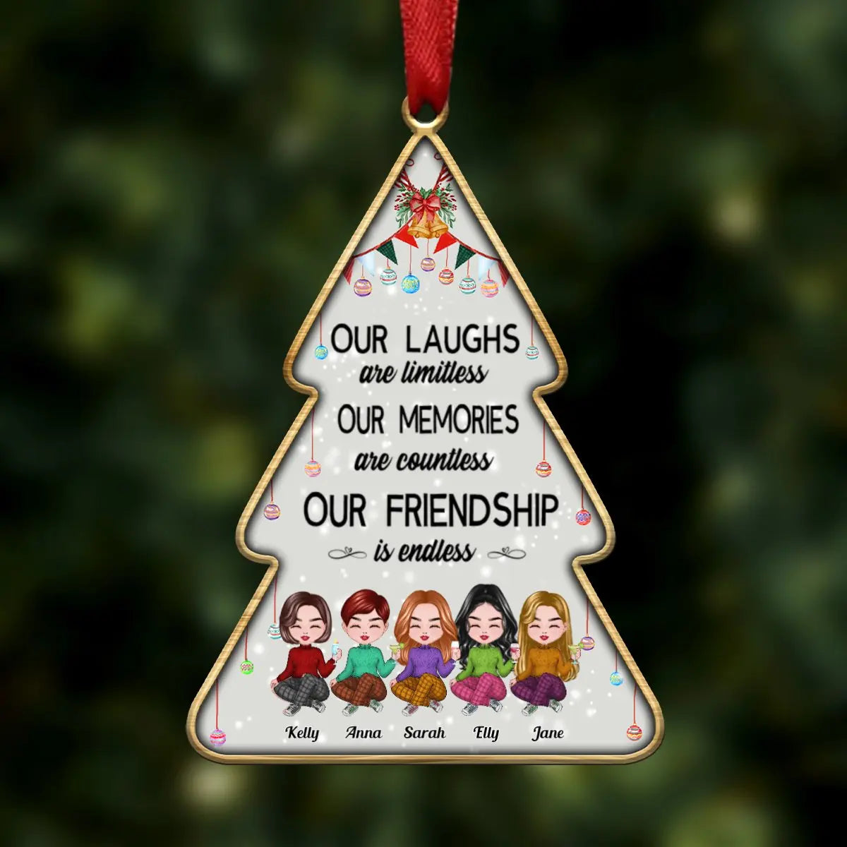 Friends - Our Laughs Are Limitless Our Memories Are Countless Our Friendship Is Endless - Personalized Transparent Ornament (Ver 2)
