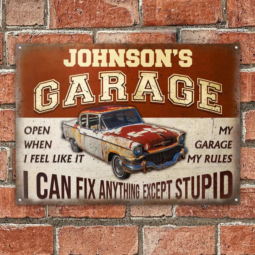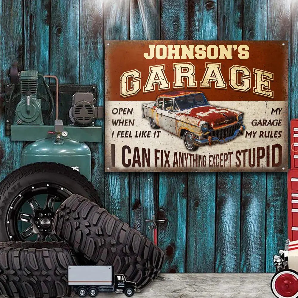 Garage Sign - Garage I Can Fix Anything Except Stupid - Personalized Metal Sign - The Next Custom Gift  Metal Sign