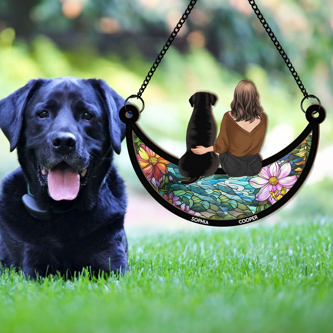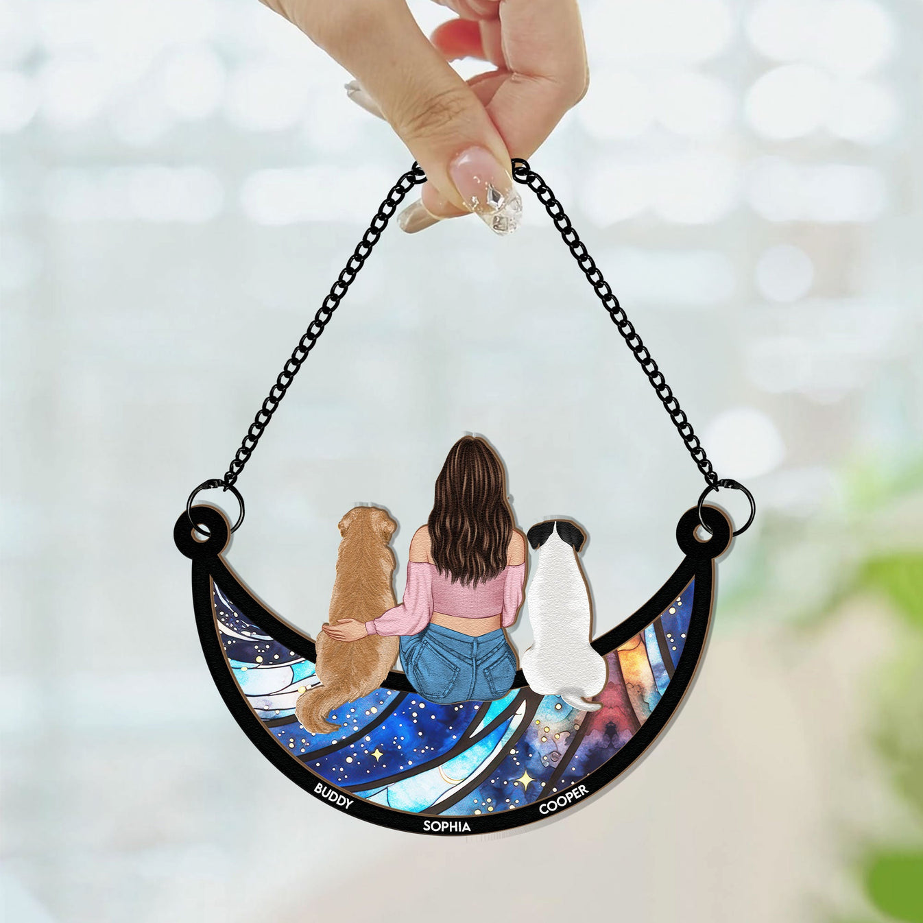 Girl And Dog Sitting On The Moon - Personalized Window Hanging Suncatcher Ornament