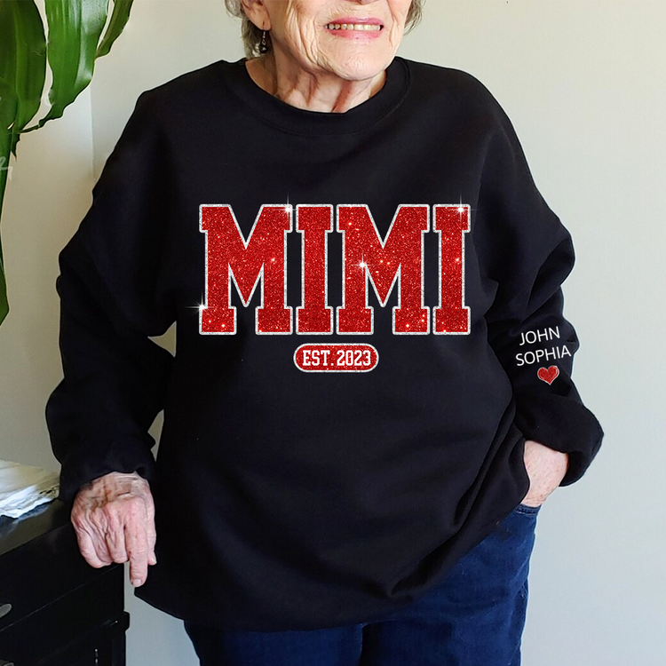 Glitter Custom Name Gigi Nana Grandma Est And Kids Sweatshirt