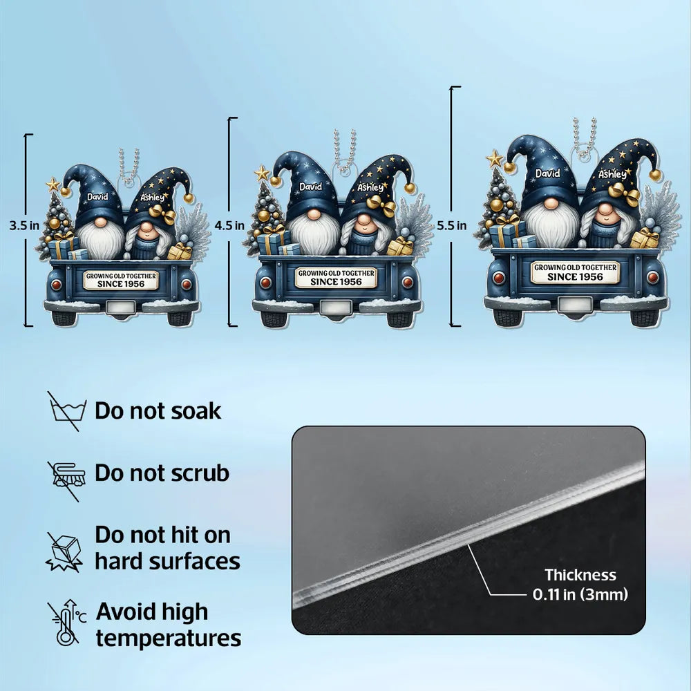Gnome Couple Growing Old Together Personalized Acrylic Christmas Ornament, Gift for Couple, Christmas Keepsake