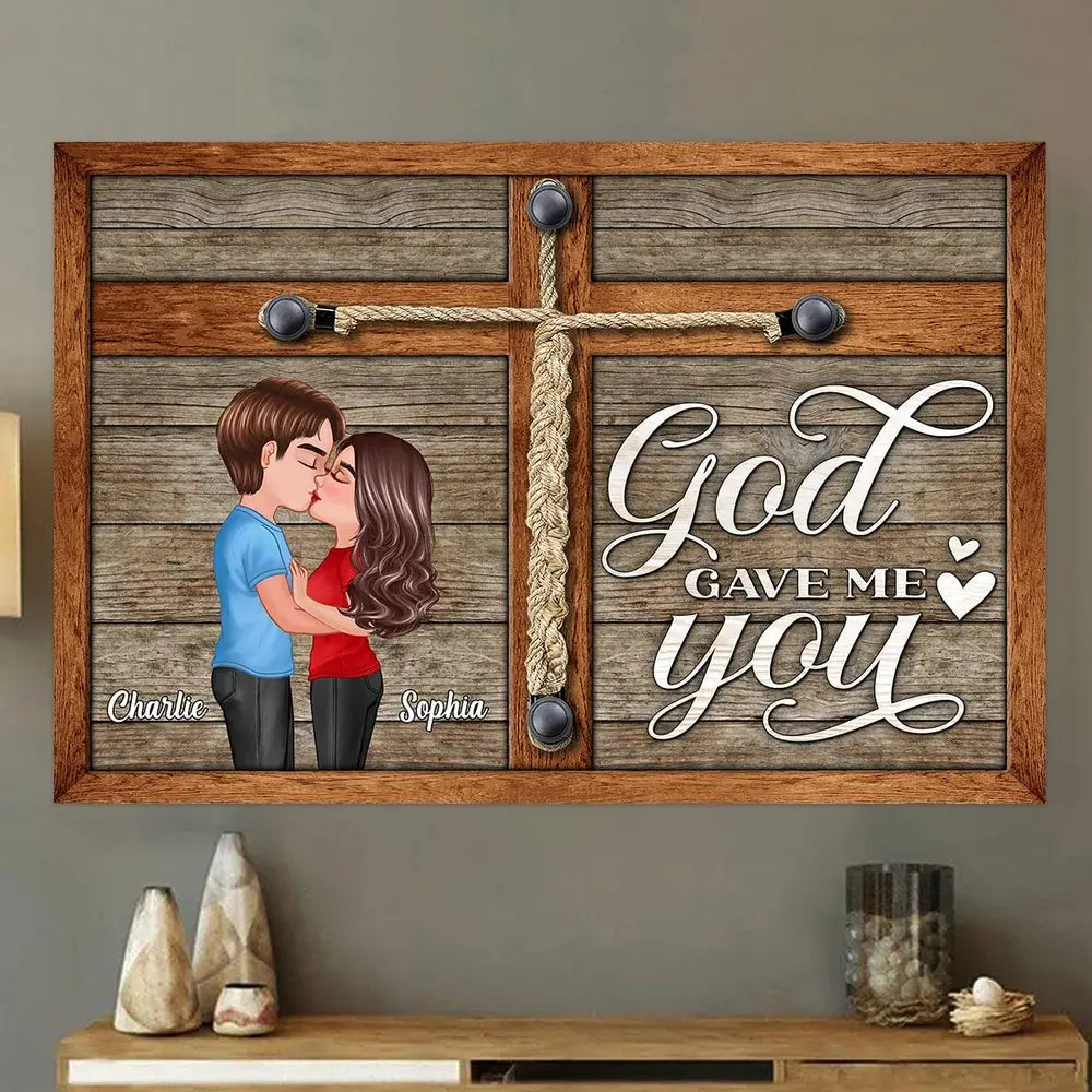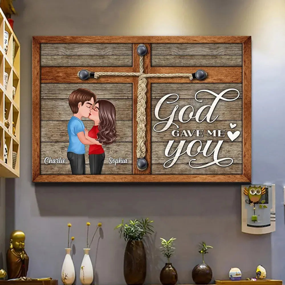 God Gave Me You Kissing Couple Gift For Him Her Personalized Poster