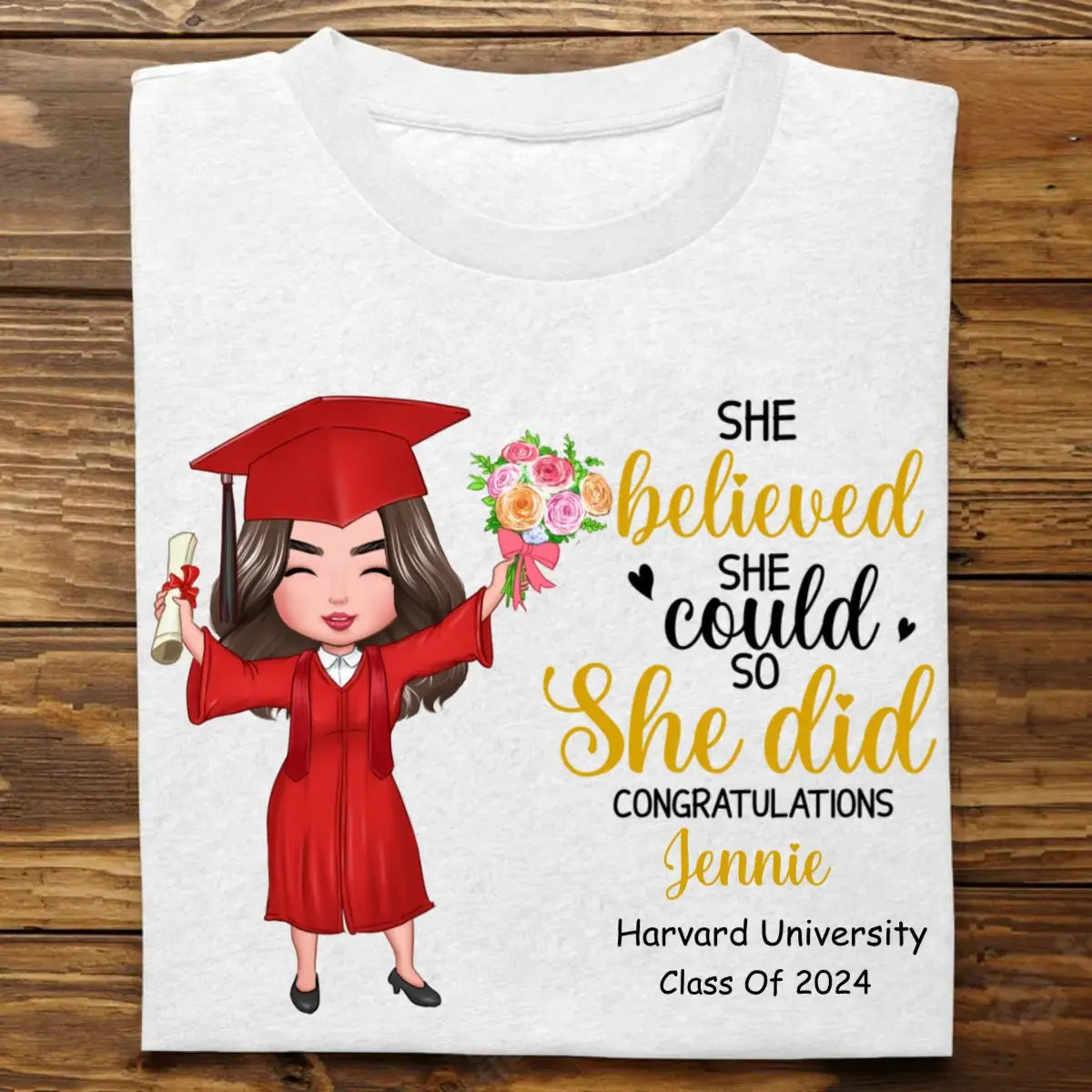 Graduation - She Believed She Could So She Did Congratulations  - Personalized Tshirt  The Next Custom Gift