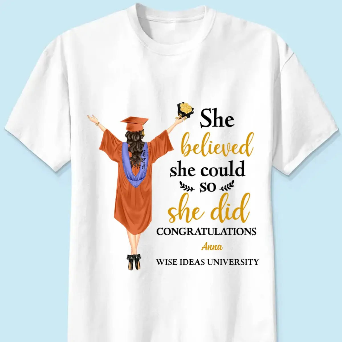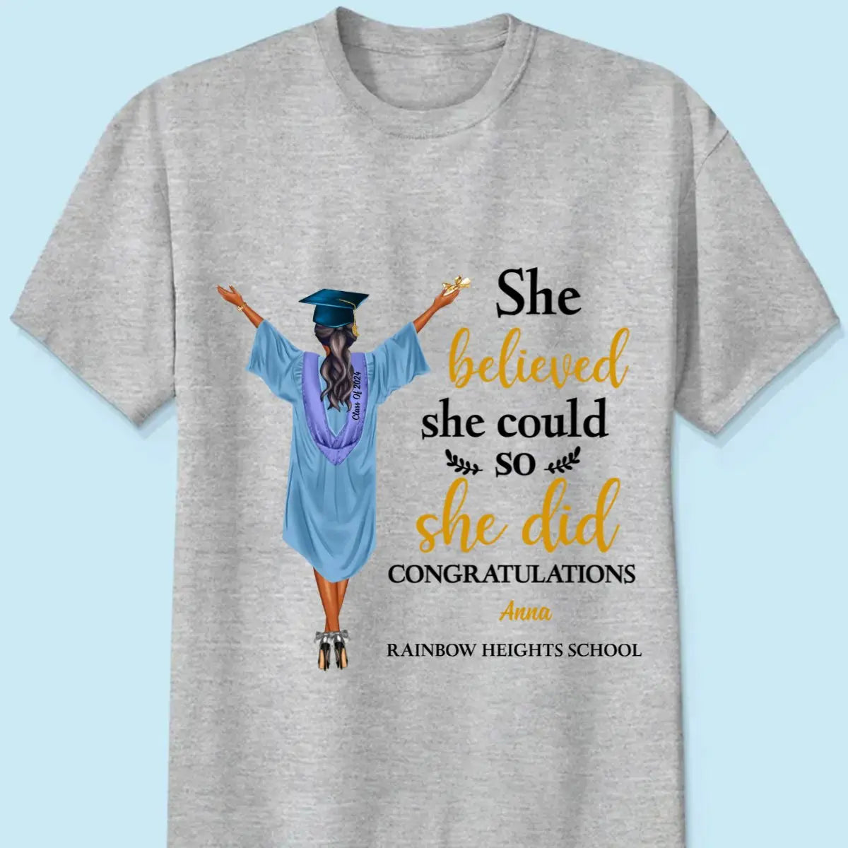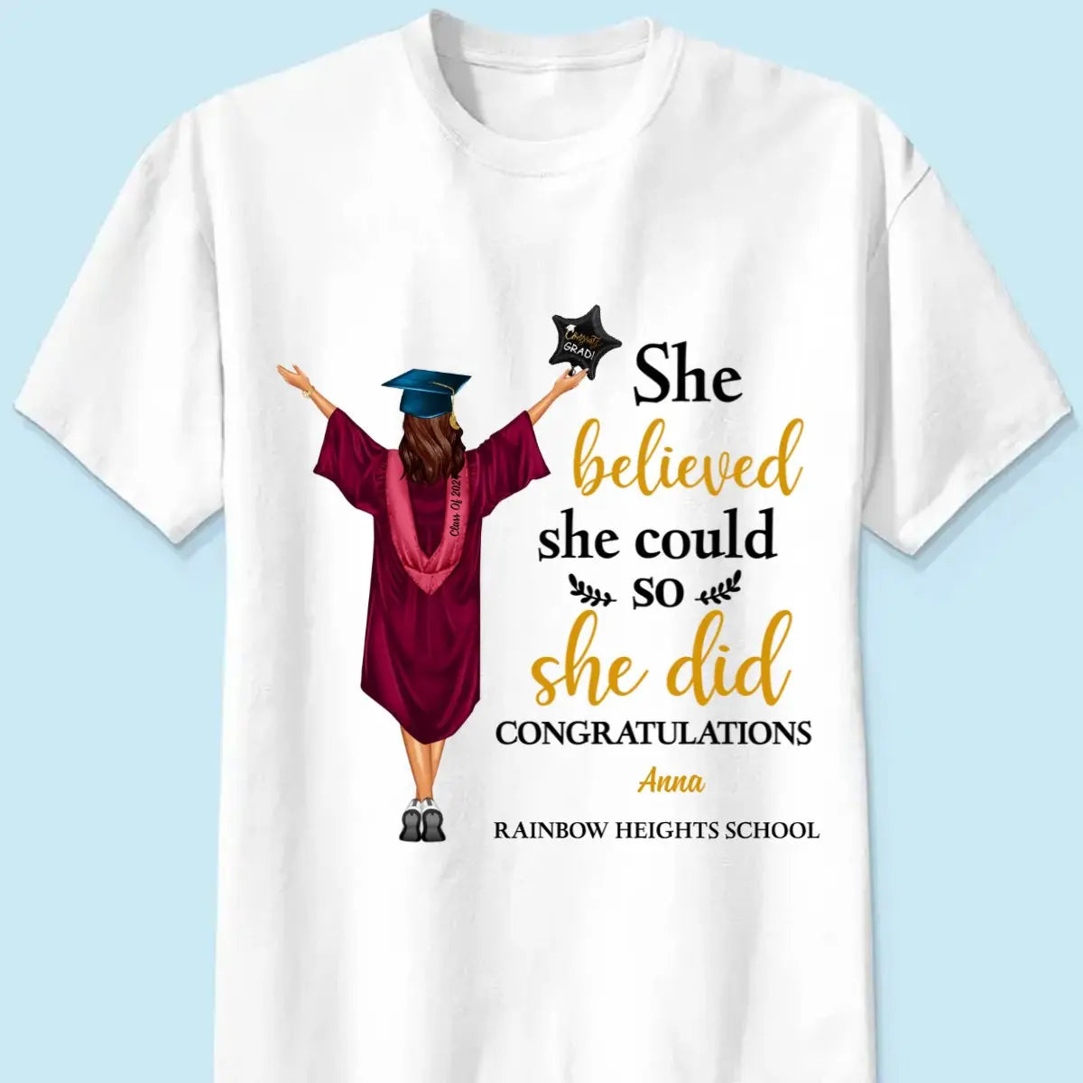 Graduation - She Believed So She Could She Did It - Personalized T-Shirt