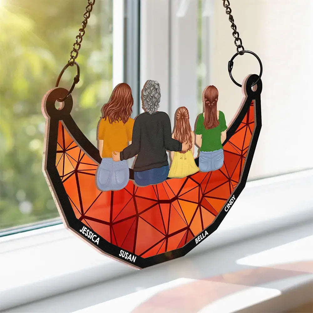 Grandma And Grandkids On The Moon - Personalized Window Hanging Suncatcher Ornament Hanging Suncatcher Ornament The Next Custom Gift