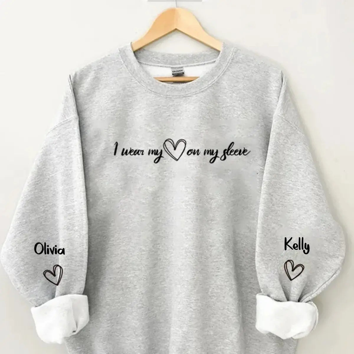 Grandma - I Wear My Heart on My Sleeve - Personalized Sweatshirt (VT) Shirts & Tops The Next Custom Gift