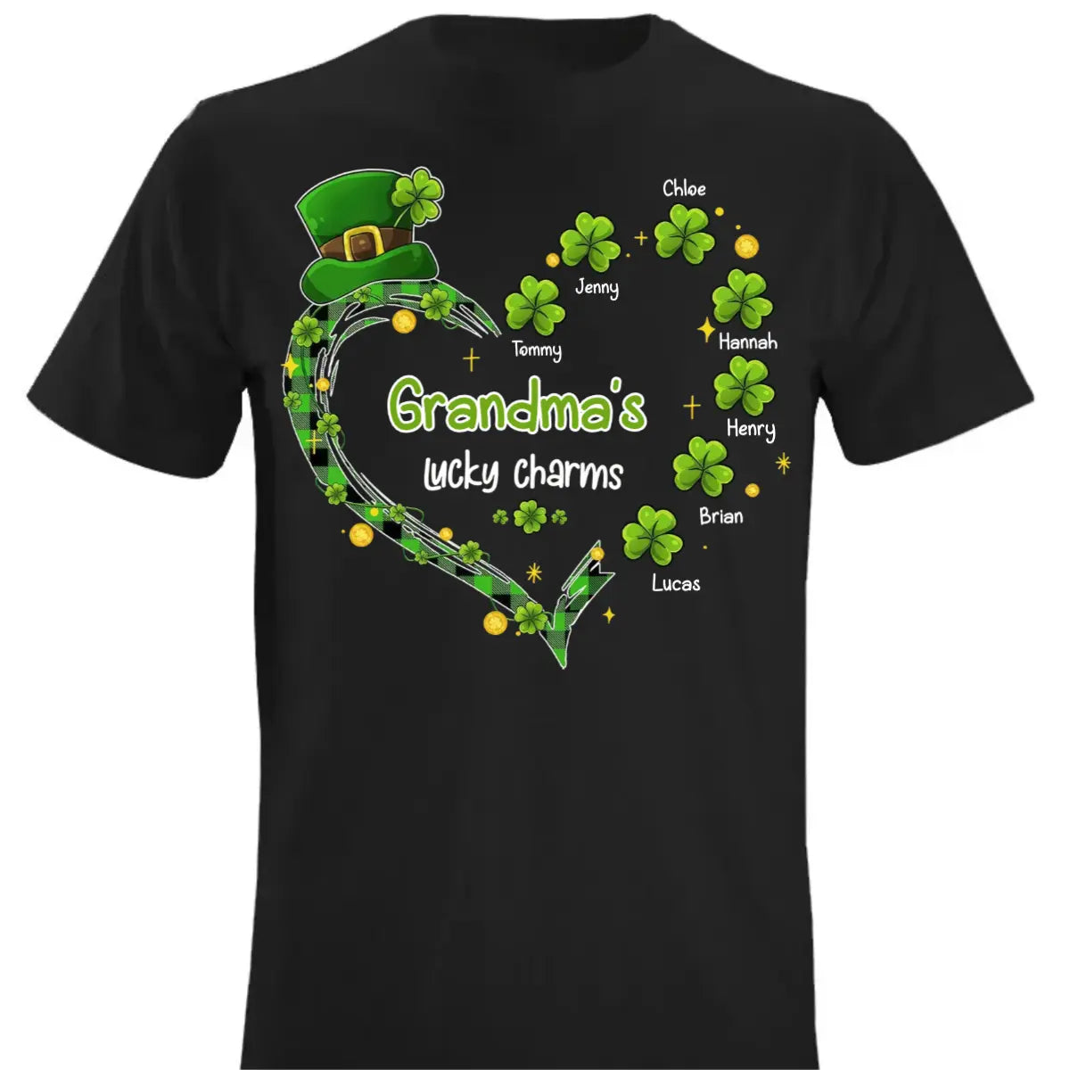 Grandma's Lucky Charms Shamrock St. Patrick's Day - Personalized T-Shirt - Gift for Grandma