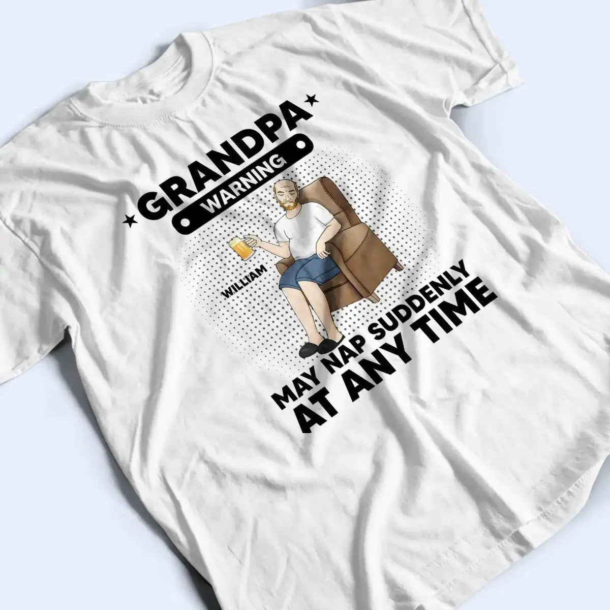 Grandpa Papa Warning May Nap Suddenly At Any Time - Personalized T Shirt
