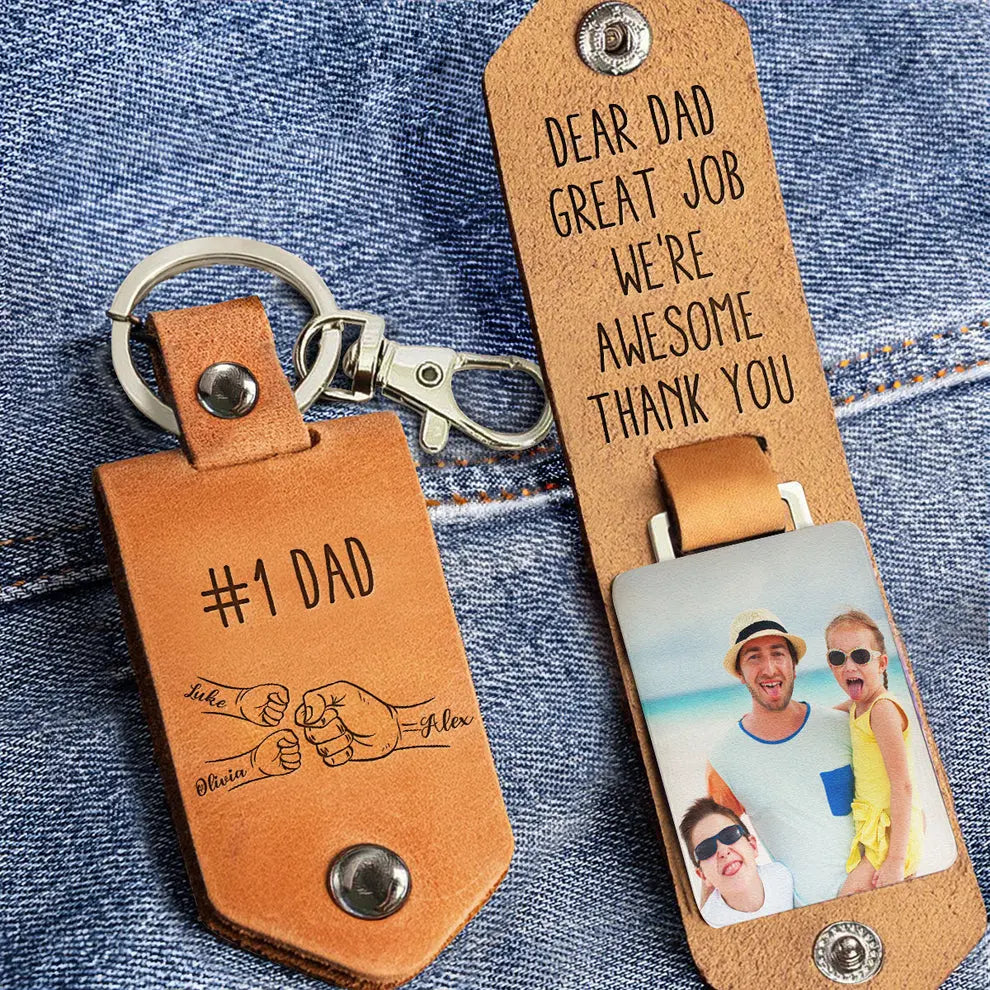 Great Job Dad We're Awesome - Personalized Leather Photo Keychain Keychain The Next Custom Gift