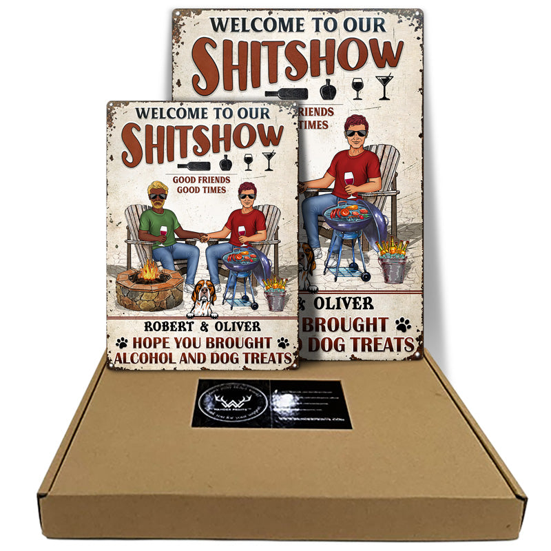 Grilling Backyard Family Couple Hope You Brought Alcohol And Dog Treats - Patio Signs - Personalized Custom Classic Metal Signs