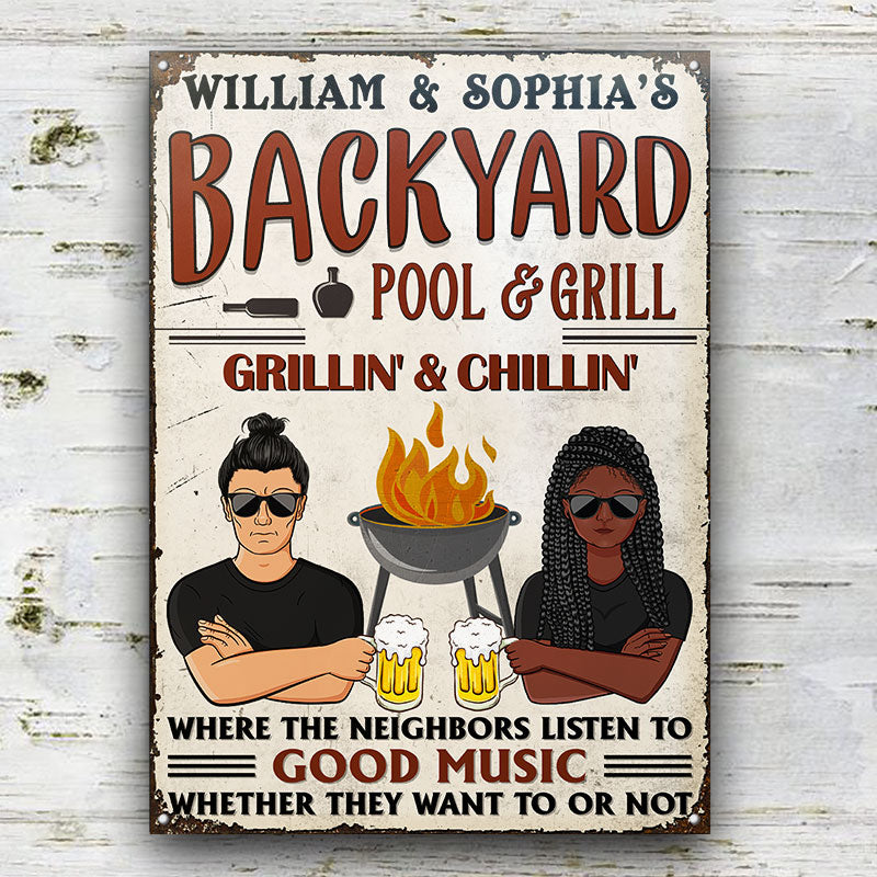 Grilling Listen To The Good Music Couple Husband Wife - Personalized Custom Classic Metal Signs